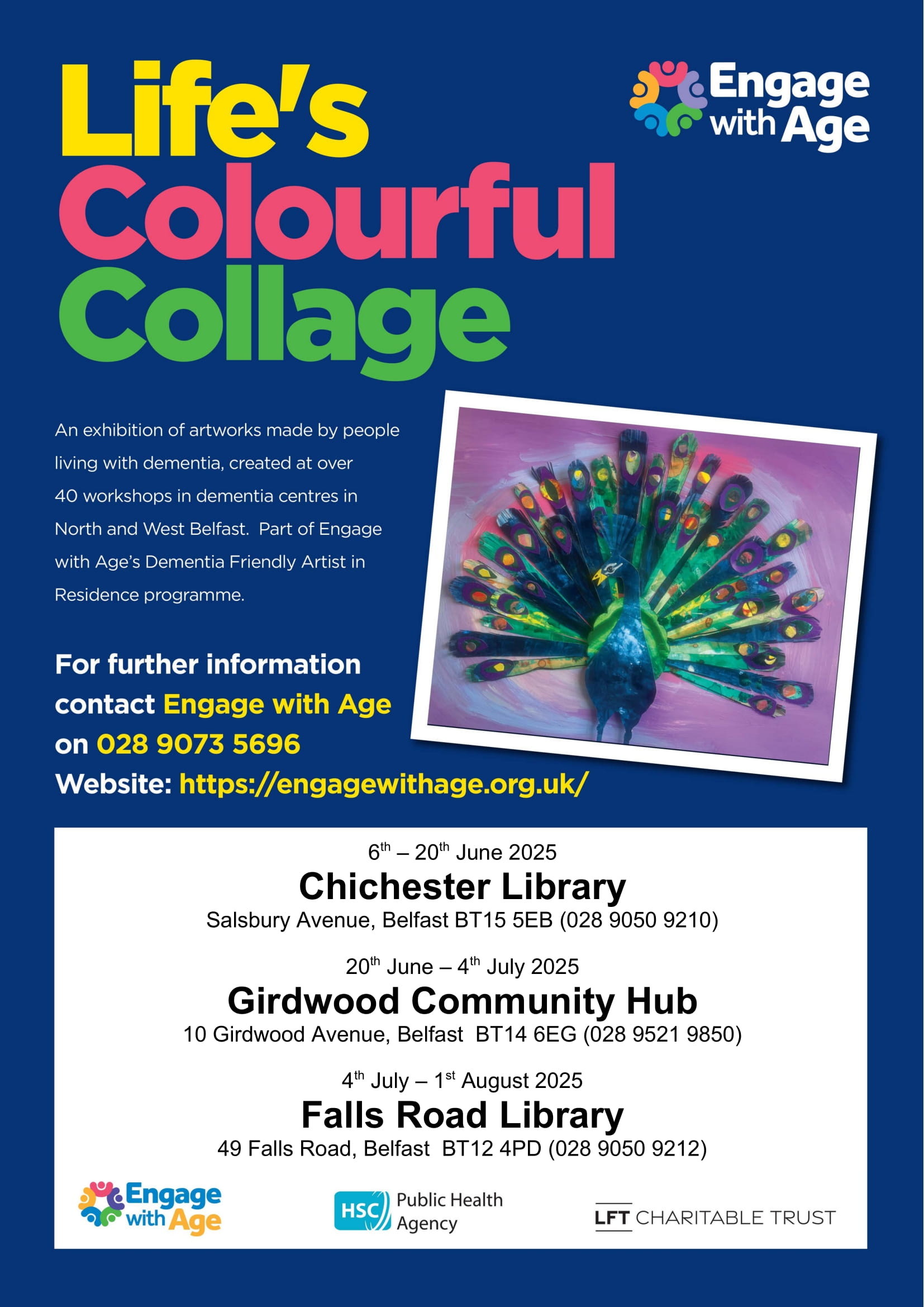 Over 40 workshops have taken place, and they have generated an exhibition called “Life’s Colourful Collage”.  The exhibition is touring through North and West Belfast.  The tour dates are: